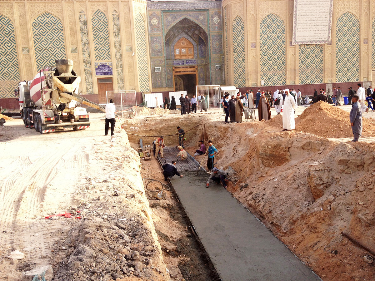 تغليف ارضية محيطه العتبة العلوية المقدسه بالمرمر (صحن الحسين (ع ) )
